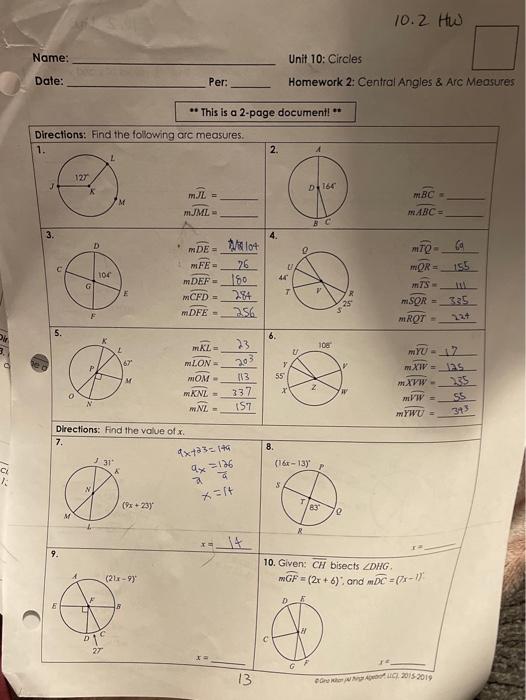 This problem has been solved! Answer to solved 10.2 hw name: Proving circles similar and measures of arcs . Circles · 10.1 notes · 10.1 worksheet · 10.1 answer key · 10.2 notes · 10.2 worksheet · 10.2 answer key · 10.3 notes · 10.3 worksheet.